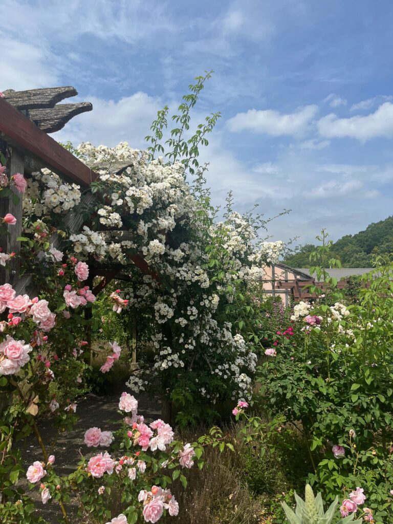 赤磐市にある熊山英国庭園へ。5月頃に訪れたので園内には色とりどりのバラが咲き誇っていました。丁寧に手入れされた庭園をゆっくり歩いていると、自然と呼吸が深くなり、心が落ち着いていきます。花好きの私には天国のような大好きな庭園です♡